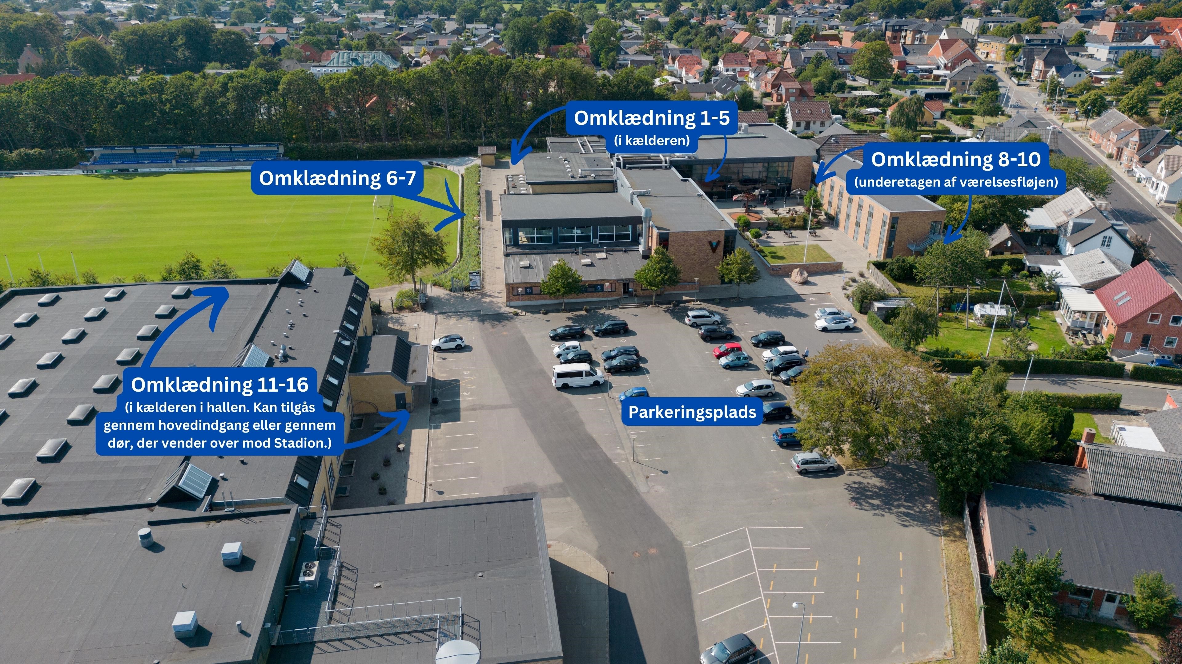 We have 15 changing rooms at the center, so it can naturally be a bit of a task to find the right one. That’s why we’ve created the following overview of the changing rooms, which we hope will help guide you in the right direction. See below.