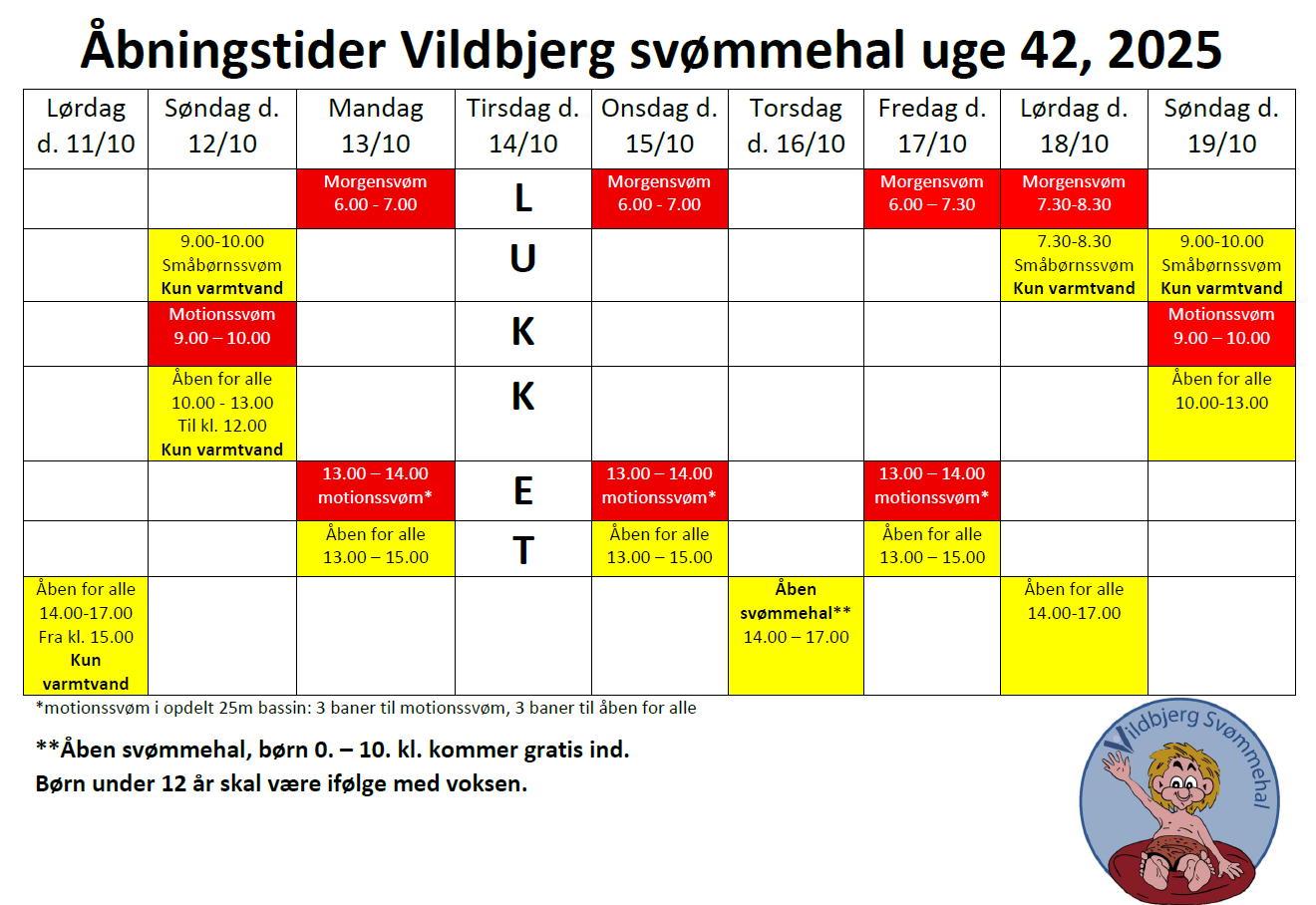 Vildbjerg Svømmehals åbningstider i uge 42 - 2025...